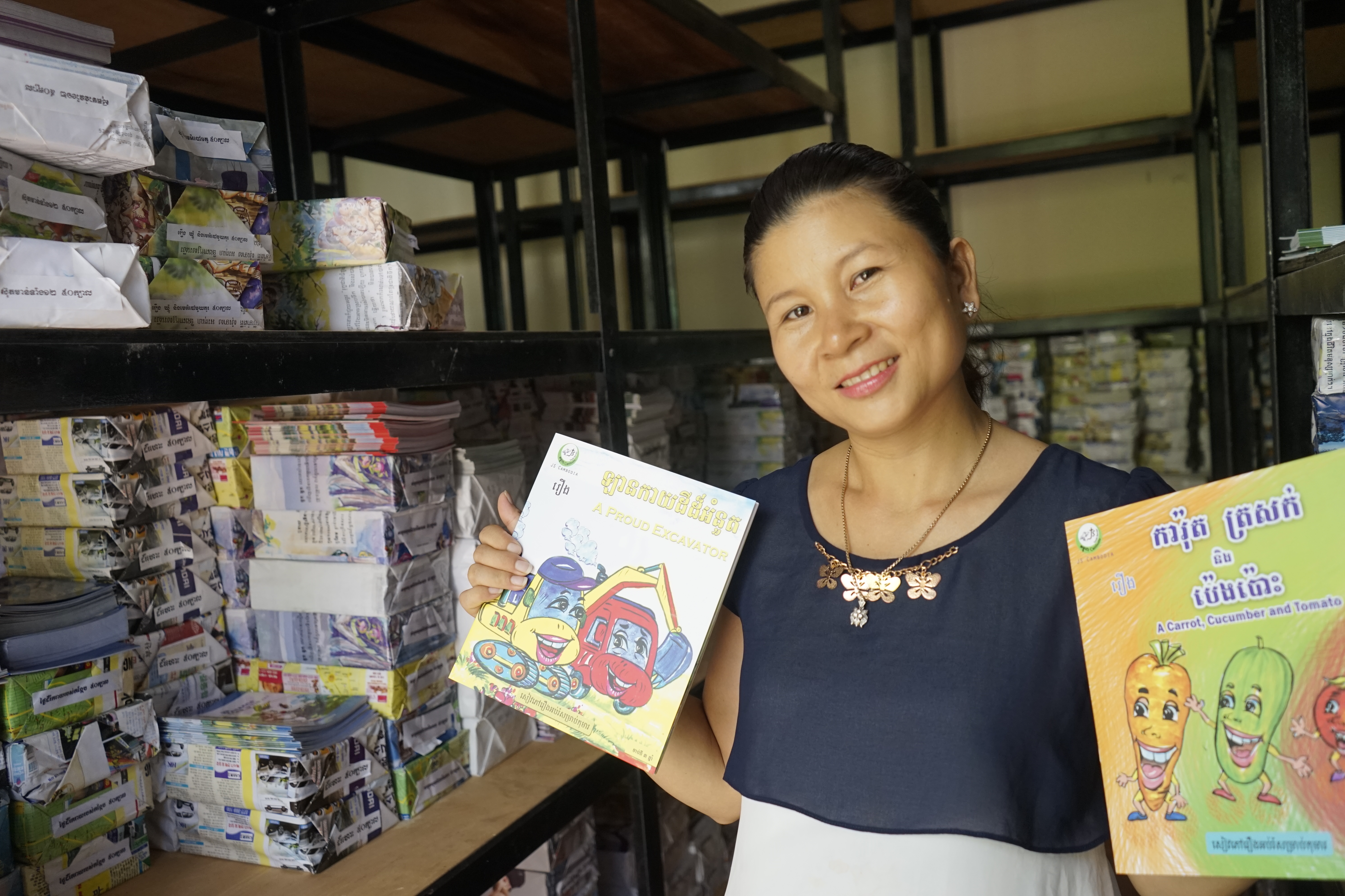 Book is the best friend and the best teacher for children. JS book production has continued for 10 years. It started to help children cultivated their emotion by reading good books include good values. Until now, there are over 200 books are published and most of the books are written by our writer, Mrs. Kol Seap. She started this job when she was 23 years old. At that time she was young and had a lack of skill at this job but she had a big dream. Now she became a respectable writer and great mother of 2 boys. Let’s meet her!
